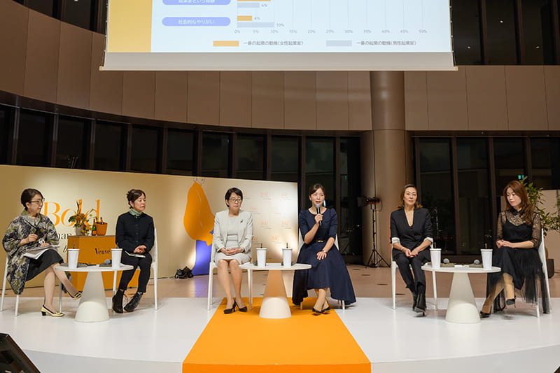 After the award ceremony, there was a panel discussion featuring the award recipients, the judges and Rikako, a lifestyle brand CEO and well-being producer, as a guest speaker. The panel exchanged opinions on topics such as “the driving force behind challenges,” “the barriers to balancing work and family life” and “the power of connections.” Data from the Veuve Clicquot International Bold Barometer, compiled from a survey of 49,000 people in 25 countries, was presented to deepen the discussion on the current situation surrounding female entrepreneurs.