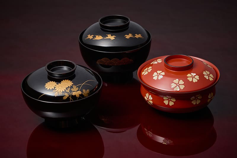 ふた裏にも見事な意匠が施されていることが多く、見どころ満載。食べ終わった後、底に美しい絵が隠れていたことに気づくこともあるだろう。そして、温かな汁を張ったお椀を手に取り、唇に触れて、料理と一体になった状態を堪能してほしい。それが伝統工芸品たる、正しい日本の器の味わい方なのだから。