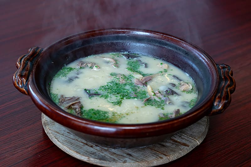 Farm Restaurant Cuore in the Hokkaido town of Shiranuka, an area where Ainu culture is deeply rooted, is attached to the Charo Sheep Farm, which pastures about 800 sheep on its 15-hectare site and processes and sells the meat. The restaurant Inaka no Taiho, located next to the poultry producer Hasugamine Farm in the Kyoto Prefecture city of Ayabe, was created with the guiding concept “an open-air restaurant next to a farm.” Shortly before the course menu is served, a chicken from the farm is slaughtered with guests’ assistance and then becomes the main ingredient in the meal they experience.