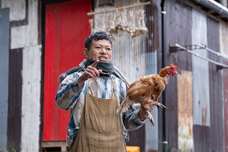Both restaurants make full use of their close proximity to a meat production site, offering dishes that include meat and internal organs from every part of the animal, with nothing wasted. Farm Restaurant Cuore’s menu features meat from sheep in various periods of growth, from lamb to mutton, as well as organs such as brain, sweetbreads, heart and kidney. At Inaka no Taiho, owner-chef Koki Watanabe points out each part of the chicken to guests while processing the bird, saying, “These are the lungs, this is an egg before its shell has hardened” and so on.