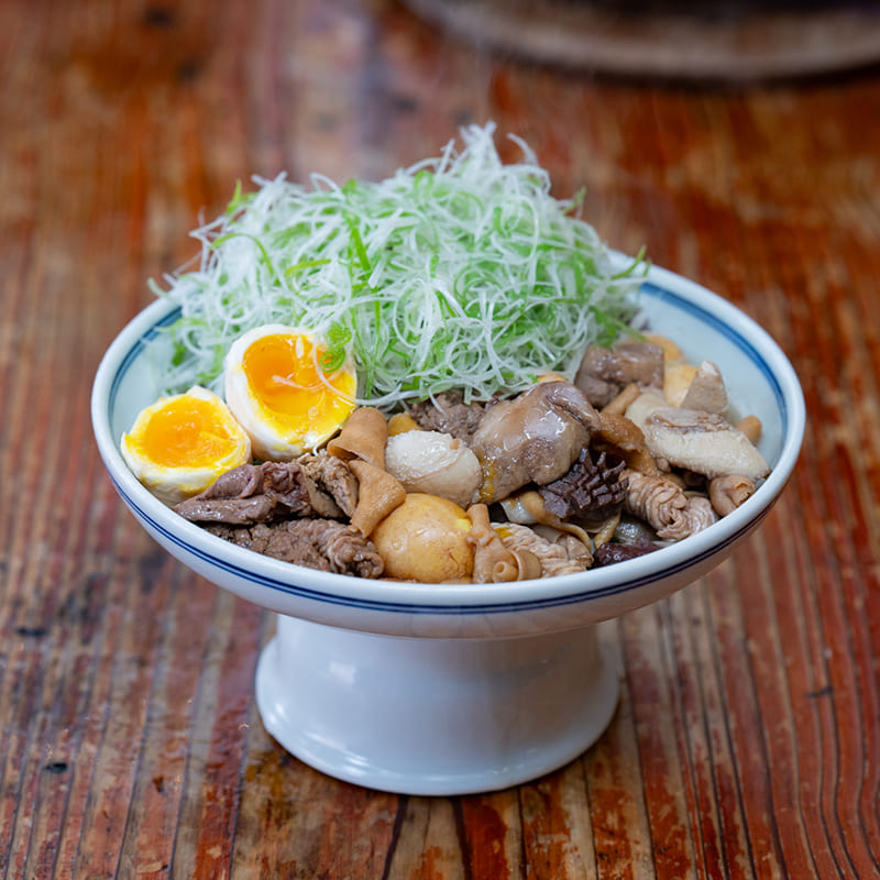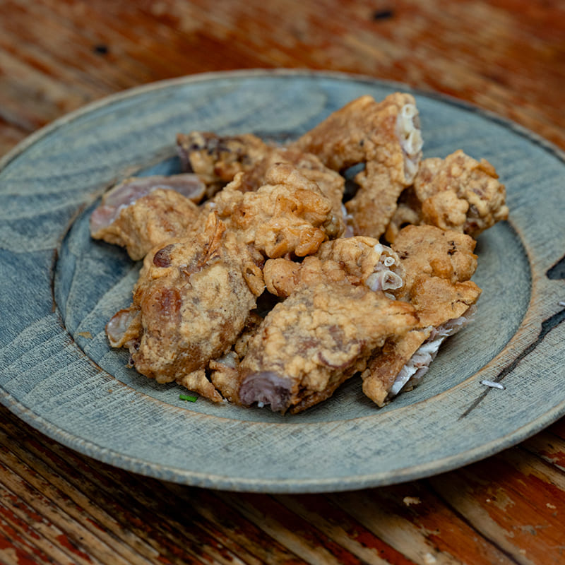 Of course, the main ingredient is the chicken that was processed just a short while earlier. The first dishes served include lightly poached internal organs, some of which are not commonly eaten, as well as chicken soup containing solidified blood, and a stir-fried dish with chicken breast. All these dishes inspire a special emotion — a realization that “living is receiving life.” This is a place that offers a blissful experience quite different from that of dining in a chandelier-lit restaurant.